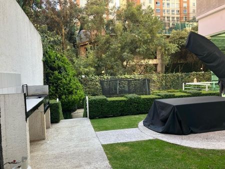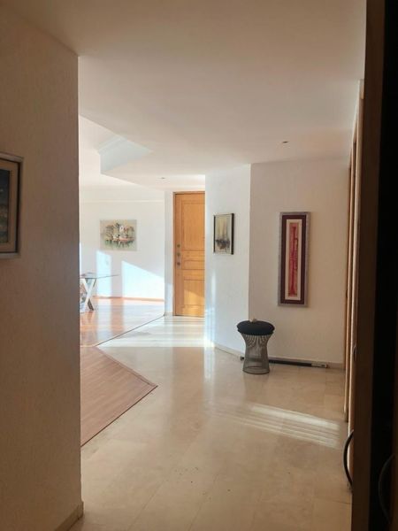Departamento en venta de 260 m2 en Hacienda de las Palmas, cuenta con sala comedor, 3 recámaras con baño, 2 recámaras con vestidor y 1 recámara con closet, cuarto de TV, cocina, lavandería, cuarto de servicio. De áreas comunes tiene: GYM, salón de eventos, ludoteca, alberca, jardín con juegos infantiles y asadores. La renta incluye el mantenimiento.